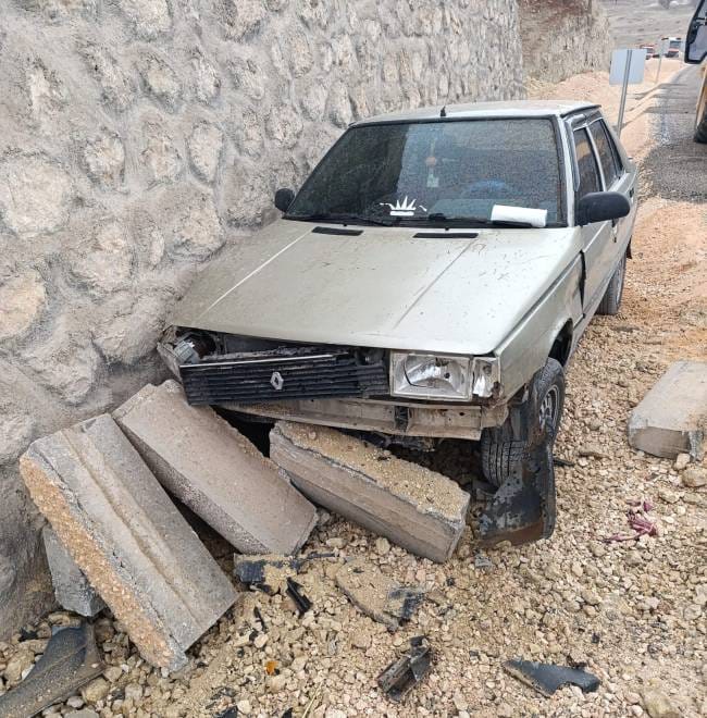 Adıyaman’ın Besni ilçesinde sürücüsünün hakimiyetinden çıkan otomobil istinat duvarına çarptı.