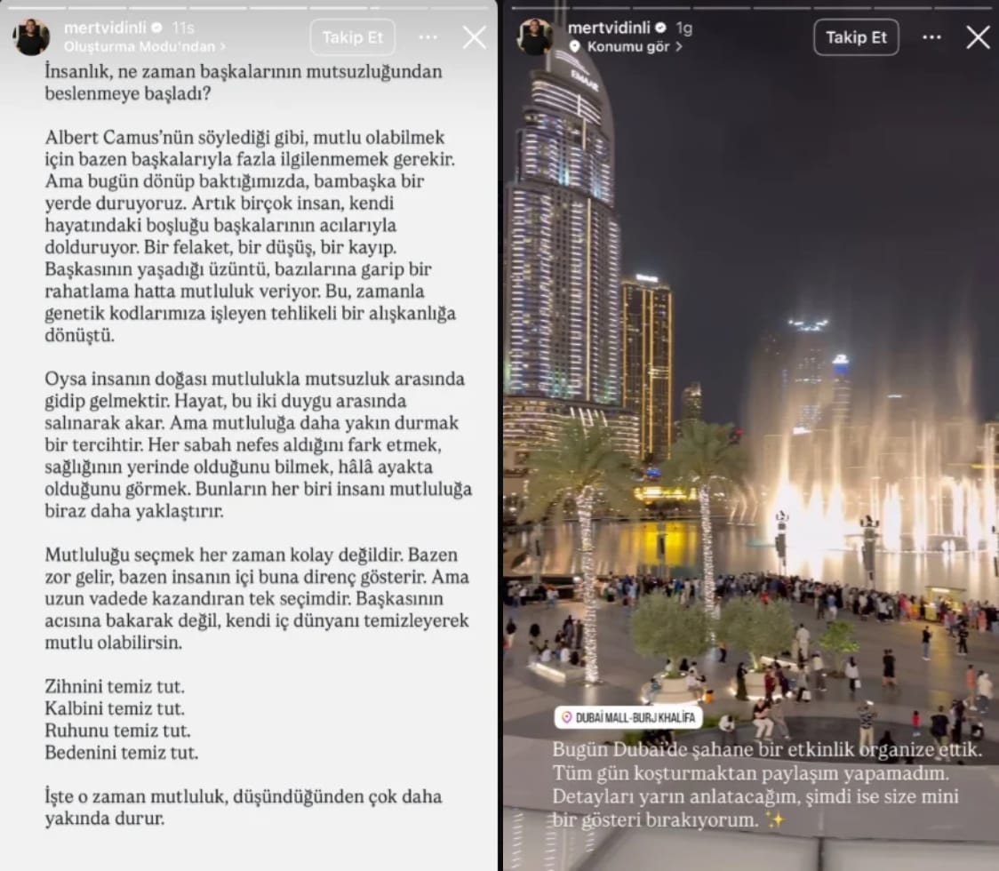 Yurt dışında olduğu belirlenen sosyal medya fenomeni Mert Vidinli Dubai’den bir paylaşımda bulundu.